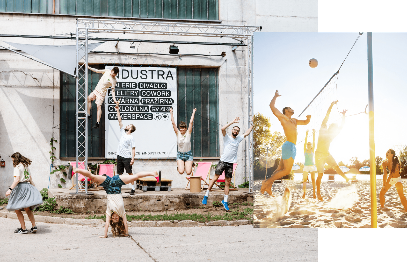 Multifunkční sportovní park rozkládající se na ploše 10 000 m² s možností využívání hřišť a prostor (beach volejbal, fotbal, basketbal, workout a gril).